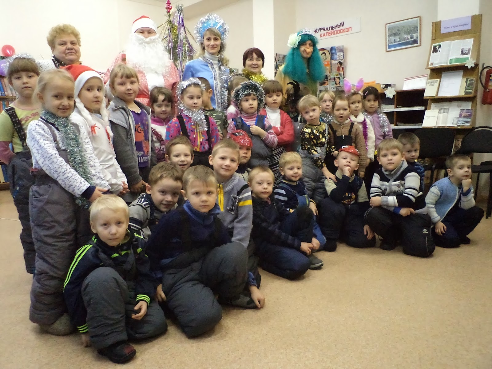 Сегодня в нашей библиотеке прошло новогоднее театрализованное представление "Внучки деда Мороза". Первыми на праздник пришли воспитанники детского сада "Вишенка". Ребята встретились со Снегурочкой, а так же Кики Моровной и Ягусей. Сказочные герои спорили, кто же из них внучка деда Мороза?, а ребята помогали отгадывать загадки, играть и водить хоровод. Дедушка Мороз успел вовремя прийти на праздник, помирить героев и зажечь новогоднюю Ёлку. Дети радовали дедушку стихами и получали от него сладкие призы. А после праздника все дружно сфотографировались у Ёлки.